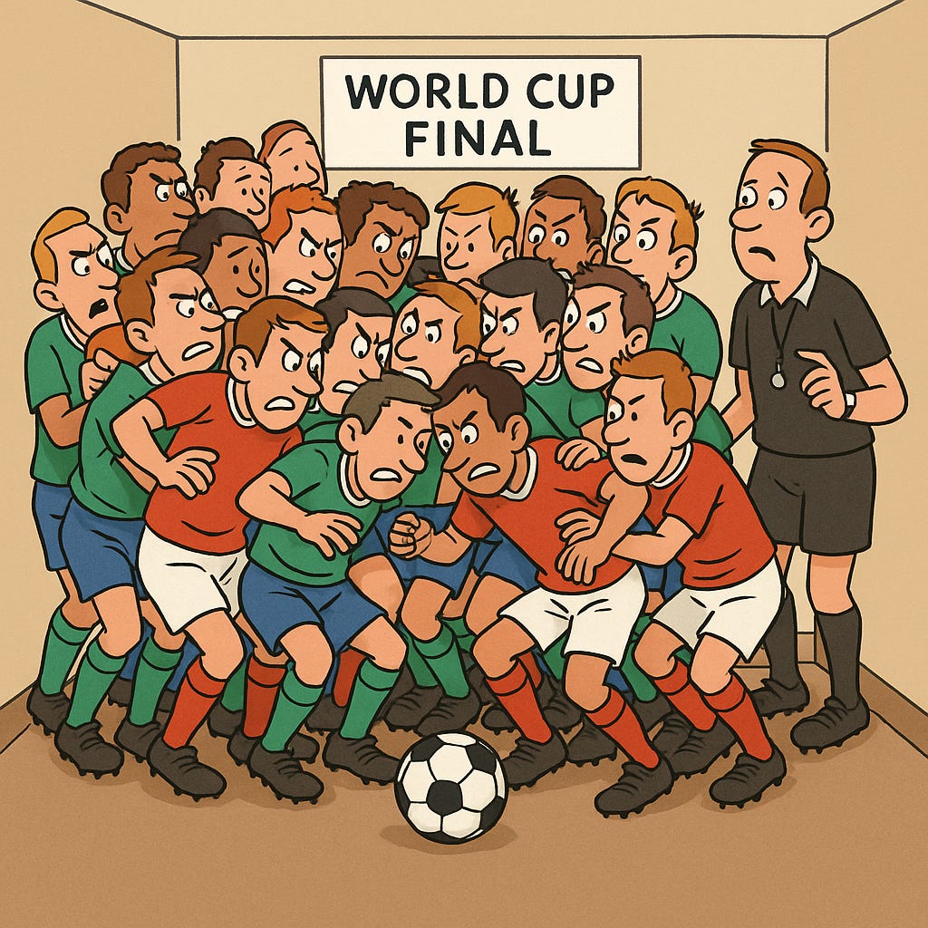 You have two football teams competing in the World Cup, eleven players against eleven. Now place all twenty-two players in a five-square-meter room and throw in a ball. Technically, the setup is the same: same players, same ball, same goal of scoring. So what could go wrong?