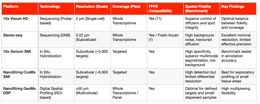 Spatial transcriptomics (ST) requires rigorous control of pre-analytical variables. Compatibility with formalin-fixed paraffin-embedded (FFPE) samples is essential for clinical archiving (1), but fixation-induced RNA fragmentation can exacerbate transcript diffusion and compromise spatial precision, particularly in sequencing-based platforms. (1)Complexity and Throughput: